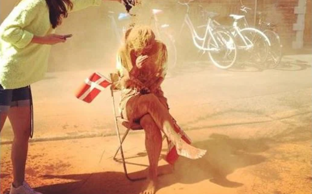 | A man is tied to a pole while being doused with spices in the Pebersvend tradition (Source: Google Images) |